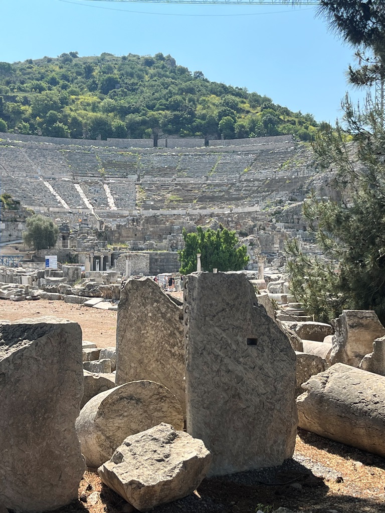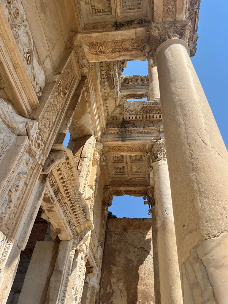 Avizinhava-se um dia rico mas picado. Saímos cedo (pelas 8h 30 min) com destino às ruínas ou antiga cidade de Éfeso. Queríamos ter entrado pelo South Gate mas o Google Maps e Waze não nos encaminharam para lá! Percebemos depois que teríamos visto a antiga cidade de cima para baixo, o que lhe dava mais realce, passando isso pela comprida e descendente rua que nos conduz à célebre Biblioteca. Entre outras coisas não se pode perder o Teatro Romano e o Museu Arqueológico.