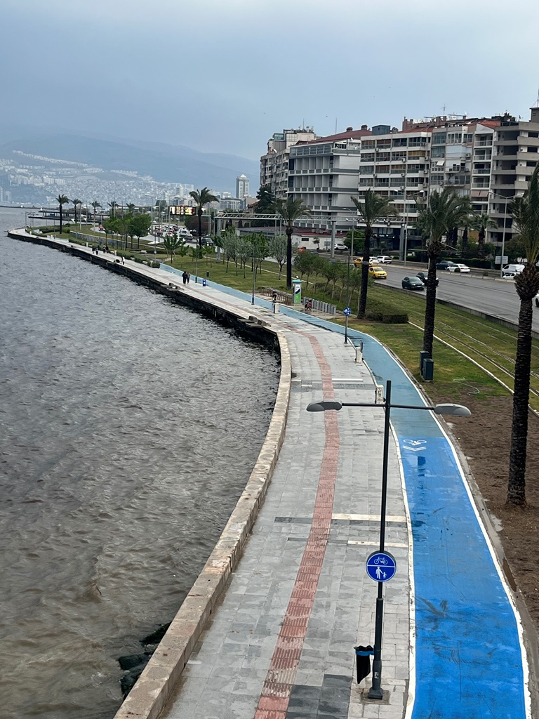 Almoçámos no caminho (numa aldeia que atravessámos) e dirigimo-nos para Esmirna (Ismir), mais concretamente para a zona do histórico elevador da Torre Asansor. Estacionámos num parque pago e fomos andando por umas ruelas animadas com uma rica oferta de cafés e restaurantes. O elevador não é pago e lá de cima tem uma vista interessante para a cidade, oferecendo também espaços de restauração panorâmicos.