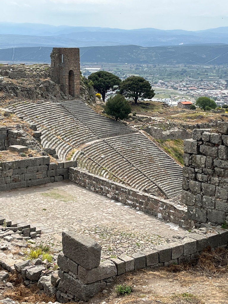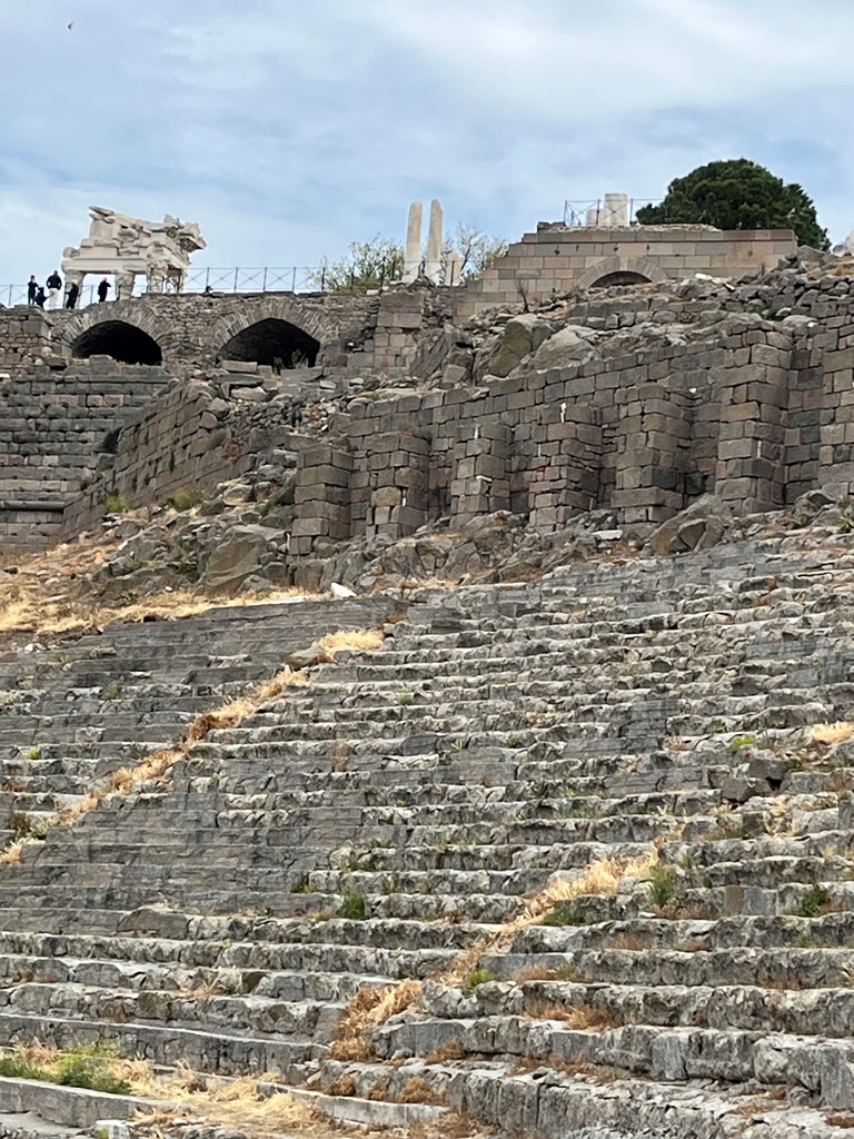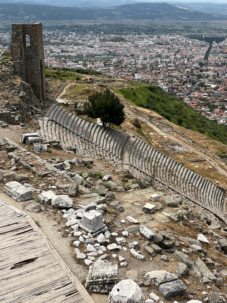 Aí íamos nós desbravar a cidade antiga de Pérgamo. Tínhamos posto a hipótese de apanhar o teleférico mas como estava um dia muito ventoso, não estava a funcionar. Fomos de carro até à zona mais alta da Acrópole.