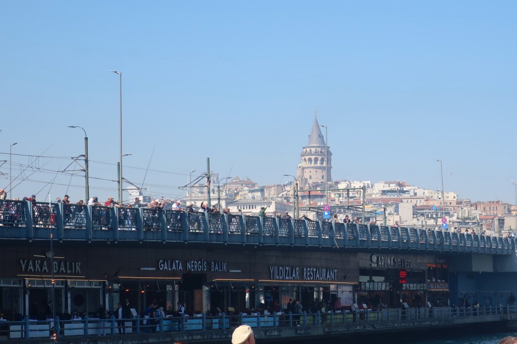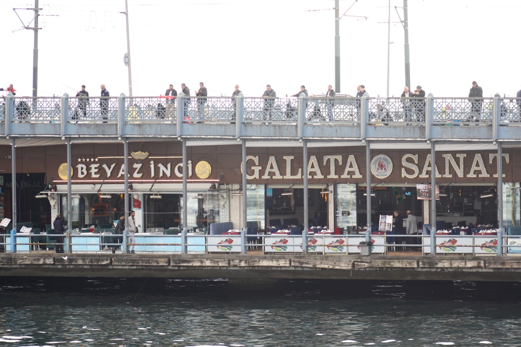 A seguir apanhámos o metro (M2) e saímos na estação Haliç, que fica a meio da Ponte do Metro sobre o Corno de Ouro. Depois fomos gozando toda a envolvência num passadiço até alcançarmos a Ponte Gálata,