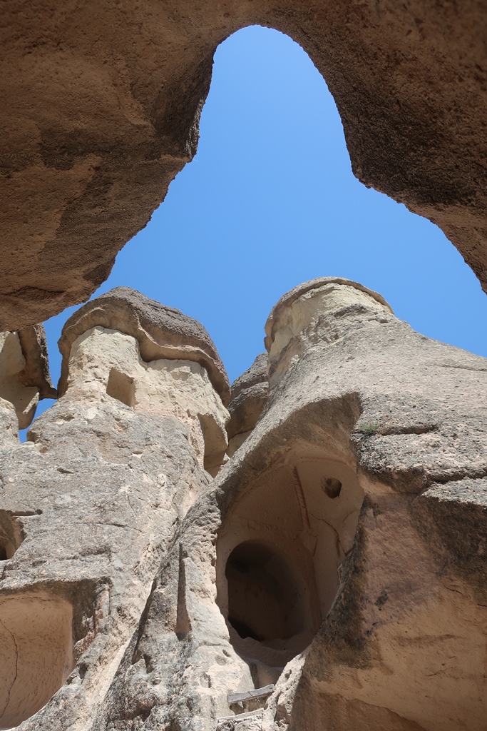 De seguida dirigimo-nos para o Vale dos Monges – Pasabag Valley – um dos lugares mais populares em Göreme, com as suas chaminés de fadas épicas e habitações em cavernas. É algo imperdível, mas prepare-se para pagar 12€ por px.