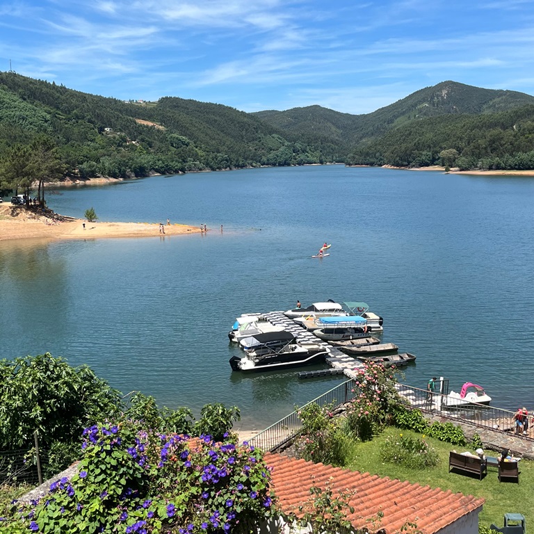 Fizemo-nos à estrada, tendo passado na zona de Ferreira do Zêzere, mas prosseguindo viagem até começarmos a vislumbrar, de um plano alto, a praia fluvial do Lago Azul. É claro que fizemos uma bem merecida paragem pois oferece uma paisagem fabulosa e descontraída.