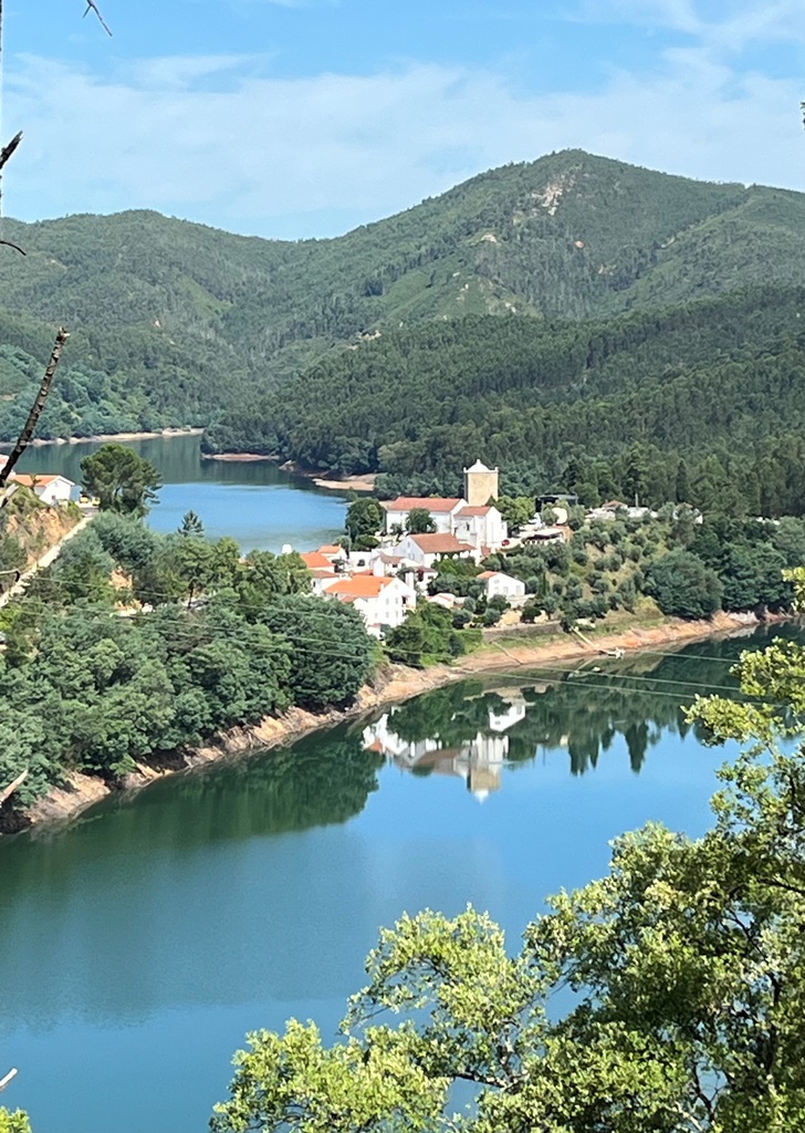 No dia seguinte após o pequeno almoço e da despedida do casal e filha amorosa do alojamento Reinado Dom Dinis, fizemo-nos à estrada mas queríamos dar mais uma oportunidade ao trilho PRR1 FZZ – no sentido de Vale Serrão e Ilhas. Fomos circulando e parando para gozar a Península de Dornes de uma outra perspetiva, rodeada pelo rio Zêzere e da Albufeira do Castelo de Bode. Quando vimos setas com a indicação de vários troços dos trilhos, estacionámos o carro e ainda demos um giro no sentido de Peralfaia. De um plano alto tivemos acesso a uma panorâmica fabulosa, tendo reconhecido parte do trajeto de barco que tínhamos feito no dia anterior, por exemplo a Ponte do Vale da Ursa e as suas imediações.