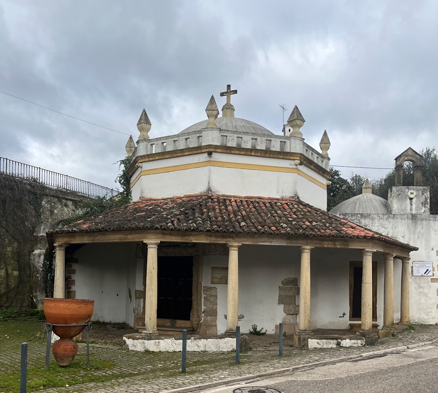 Depois (tendo o pelourinho nas nossas costas) tínhamos alguns metros adiante a pequena Capela de São Gregório, de planta octogonal e um portal manuelino.