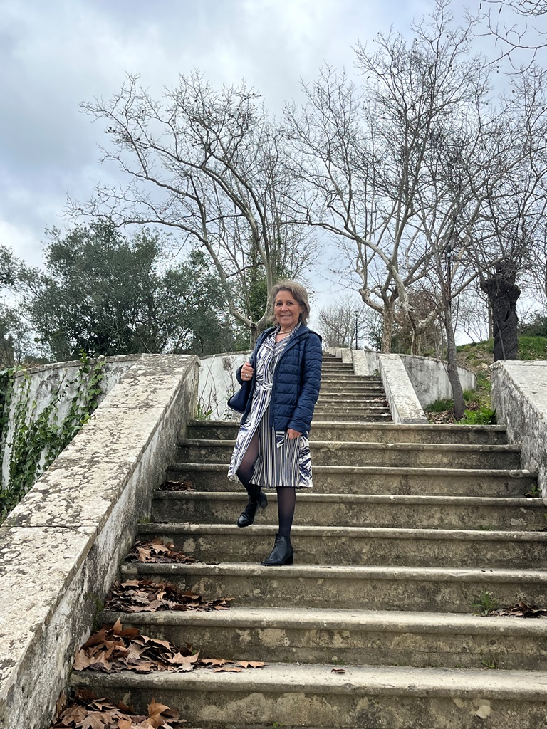 Daí dirigimo-nos para a Praça Infante D. Henrique (aproveitando para ir ao Posto de Turismo) com a intenção de dar um giro pela Mata dos Sete Montes. Aí fomos circulando até atingir o Miradouro do Baloiço, o qual tem uma vista interessante para a cidade, passámos pela Charolinha (casa de fresco, espaço de recolhimento e meditação, da época renascentista– contemporânea da construção do Convento) e pela Fonte da Charolinha (única fonte de água perene existente na Mata).
