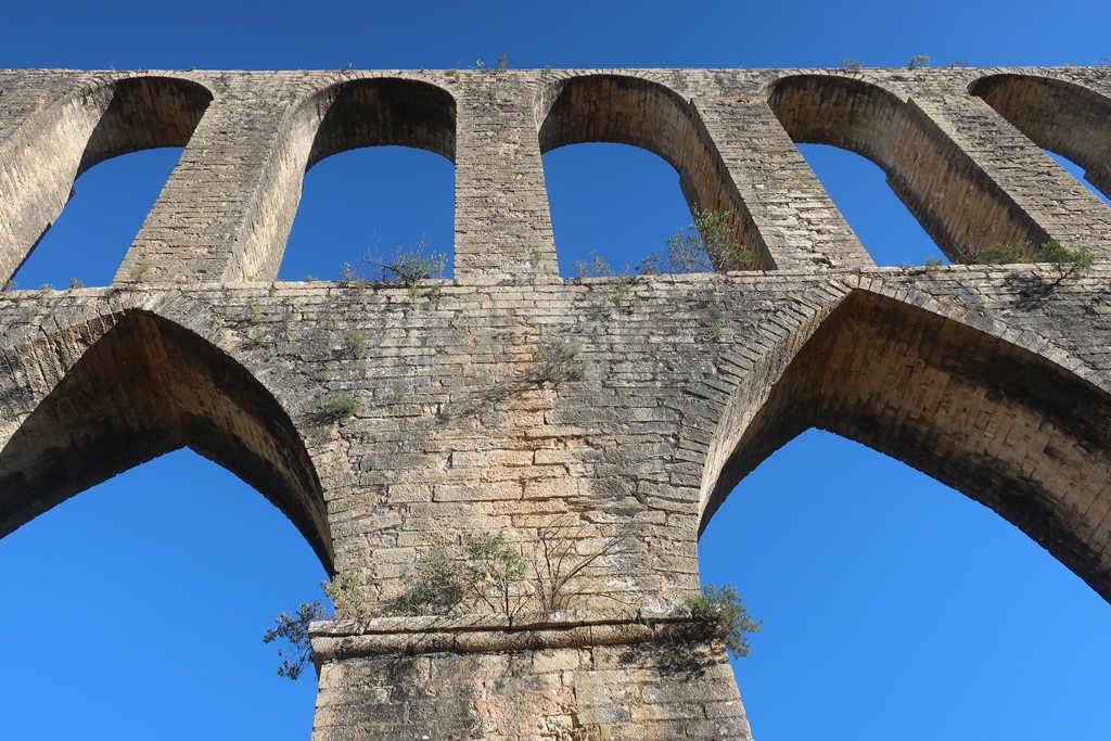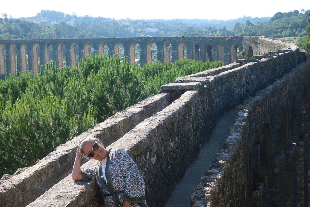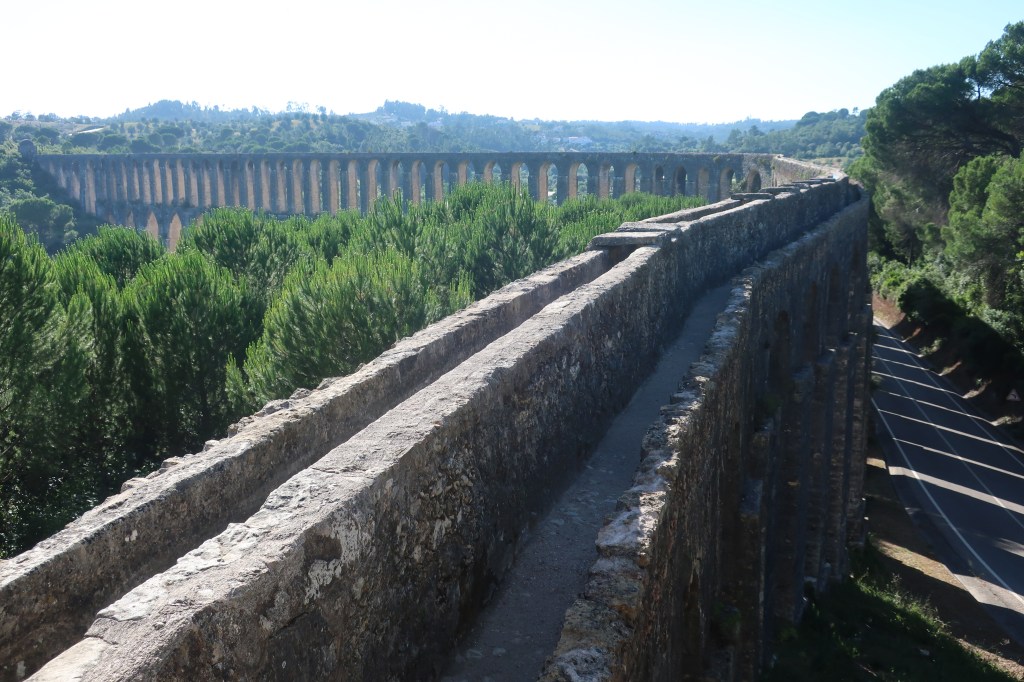 Quando chegámos ao local sentimo-nos diminutos perante algo tão lá no cimo! Foi toca a trepar degraus para iniciarmos o percurso (no sentido contrário ao castelo e convento). Só apetecia ter asas e voar! Foi uma experiência espetacular mas é necessário ser corajosos pois o aqueduto em determinadas zonas não tem proteção, tendo sido necessário ir atentos ” às manobras”. Focando-nos nas perspetivas lindas alcançadas daquela altura, é algo a considerar e não descartar do “pacote”!