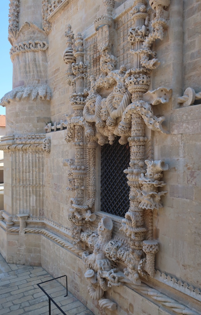 De seguida fomos gozar as zonas do exterior do Convento, não podendo esquecer o seu ex-líbris: a janela (ocidental da nave) manuelina ou do capítulo ornamentada com elementos do mundo da navegação (madeira, cordame, bóias…) entre outros. Com tudo isto dedicámos cerca de 1h e meia ao castelo e convento.