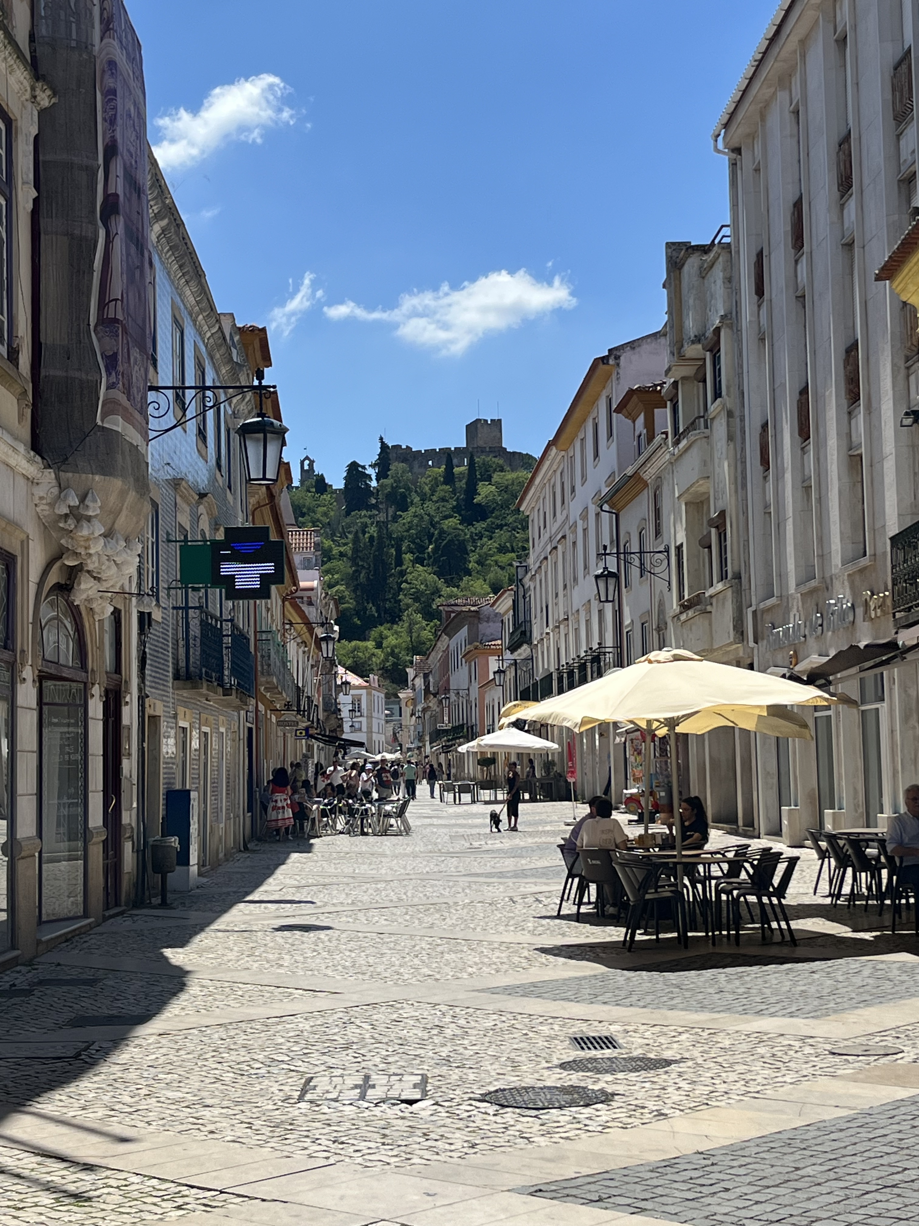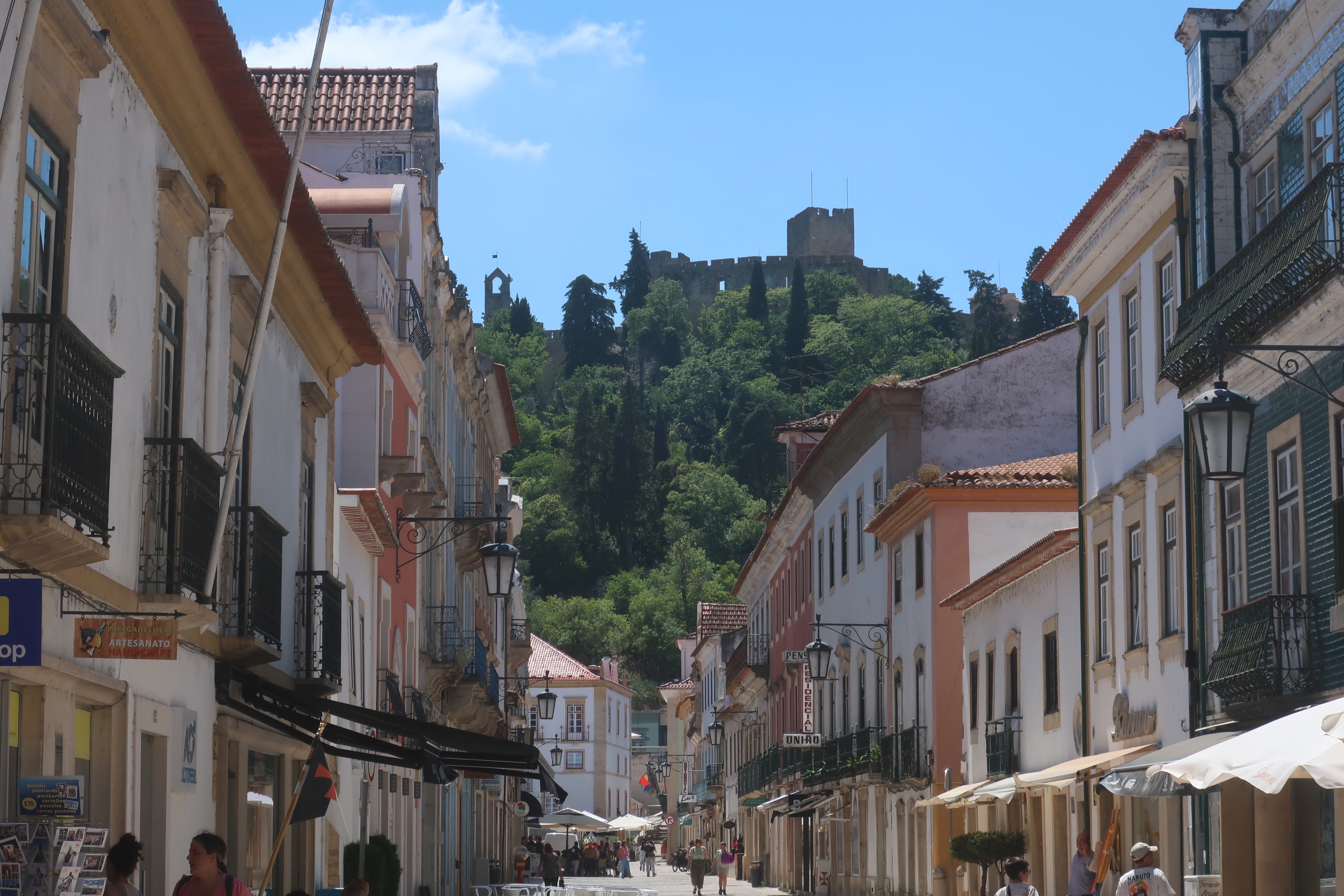 Depois encaminhámo-nos para a famosa Rua Serpa Pinto ou Corredoura, assim designada pois em séculos idos era ali que os cavaleiros Templários “corriam as lanças”. É uma rua pedonal com edifícios com uma arquitetura muito interessante e com uma oferta de lojas muito variada. Deixámo-nos perder por aí, gozando a Rua Serpa Pinto bem como o Castelo que se adivinhava lá ao longe.