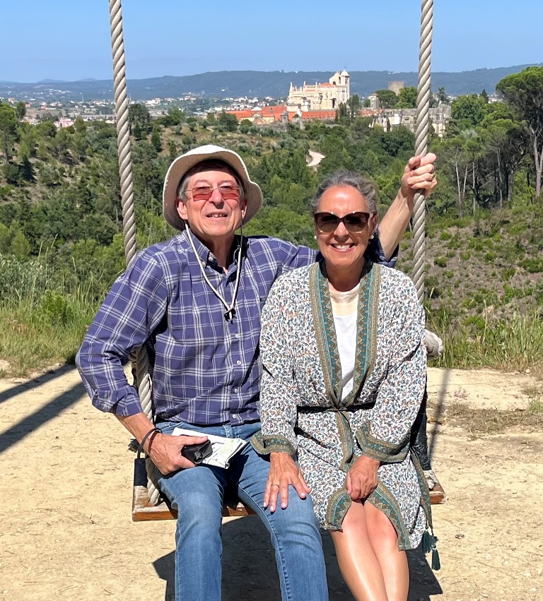 A seguir a esses momentos maravilhosos, queríamos continuar a explorar mais um pouco a aprazível cidade de Tomar, tendo tirado logo uma fotografia da praxe, ainda no parque, ao pé da Roda do Mouchão (engenho mecânico movido pelas águas correntes do rio Nabão que outrora se dedicava à irrigação dos campos de cultivo), parecendo uns miúdos quando vêem algo que lhes agrada!