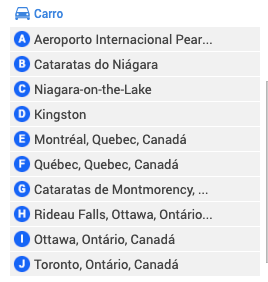 | Planificação da Viagem Uma vez que o Canadá é um país cujas distâncias são bastante consideráveis, convém definir a volta/ver quais os locais a visitar e simular no Google Maps o número de quilómetros entre as cidades que fazem parte do plano para definir onde deve pernoitar. Deve-se também analisar os pontos de maior interesse de cada local e ver o tempo necessário para os conhecer |