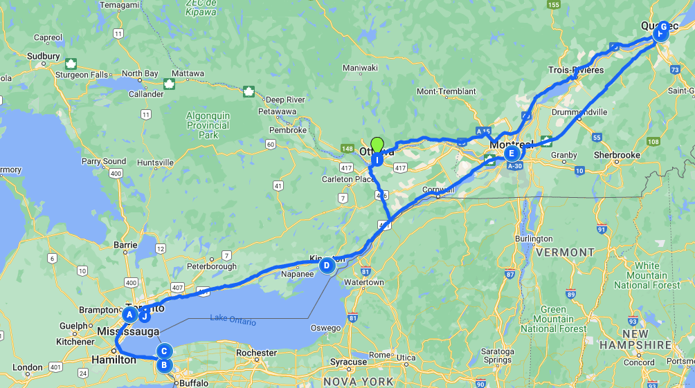 | 7º DIA Québec – Ottawa 445 km – 4h 45 min |