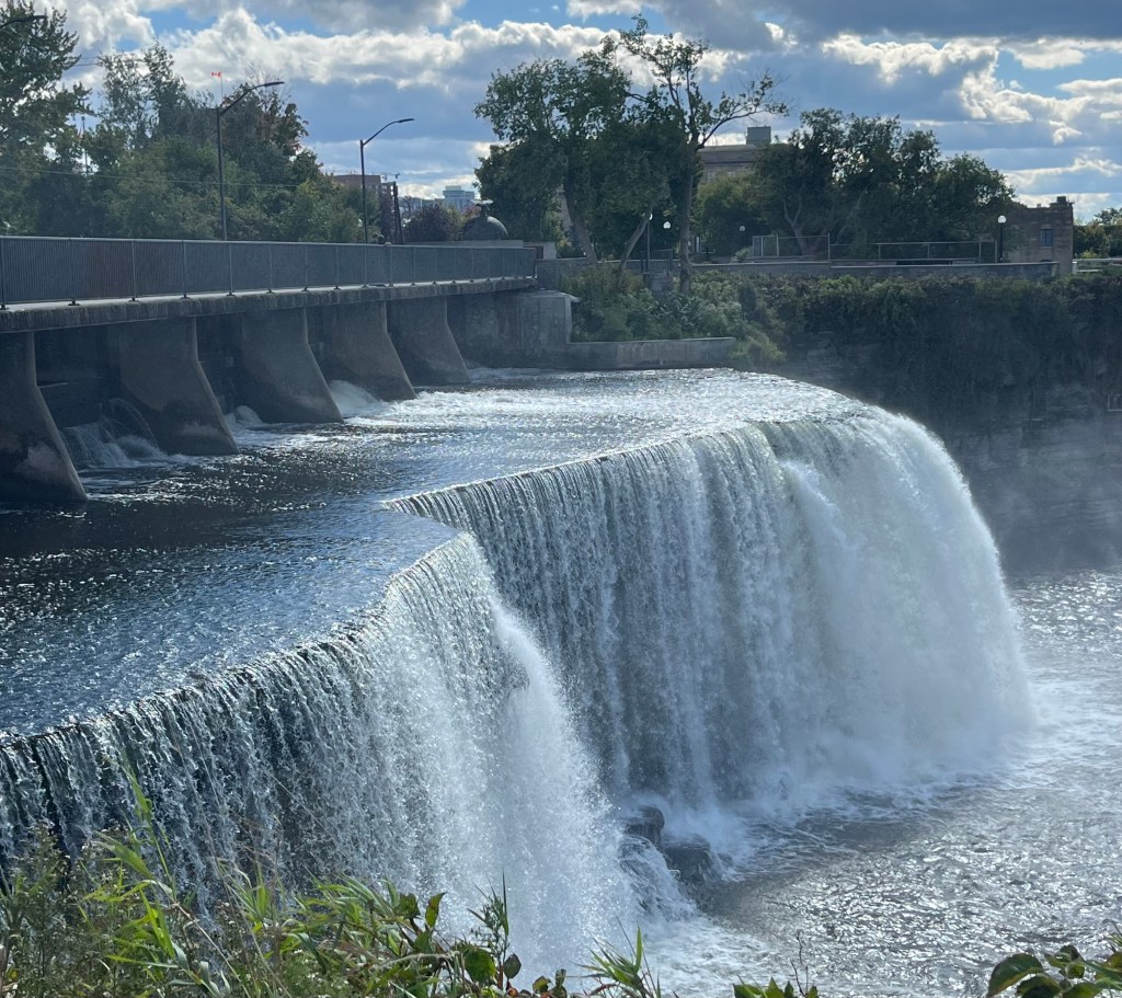 Foi o trajeto mais penoso da viagem pois para além do número de quilómetros, a chuva acompanhou-nos durante parte do trajeto, mas mesmo assim por volta das 14 h (saímos da cidade de Québec por volta das 8h) já estávamos a gozar mais umas cataratas, desta vez as Rideau Falls, muito perto de Ottawa.