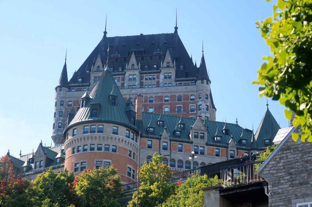 A seguir, o ícone da cidade esperava por nós: o Château Frontenac! Em frente tínhamos o Terrasse Dufferin, com a estátua de Samuel de Champlain, que se estendia a toda a dimensão (desde o Museu do Forte dum lado e do outro as escadas de acesso à Cidadela) tendo uma vista panorâmica para o rio São Lourenço, Lévis (localidade do outro lado do rio), para a basse ville de Québec e para a Île d’Orléans.