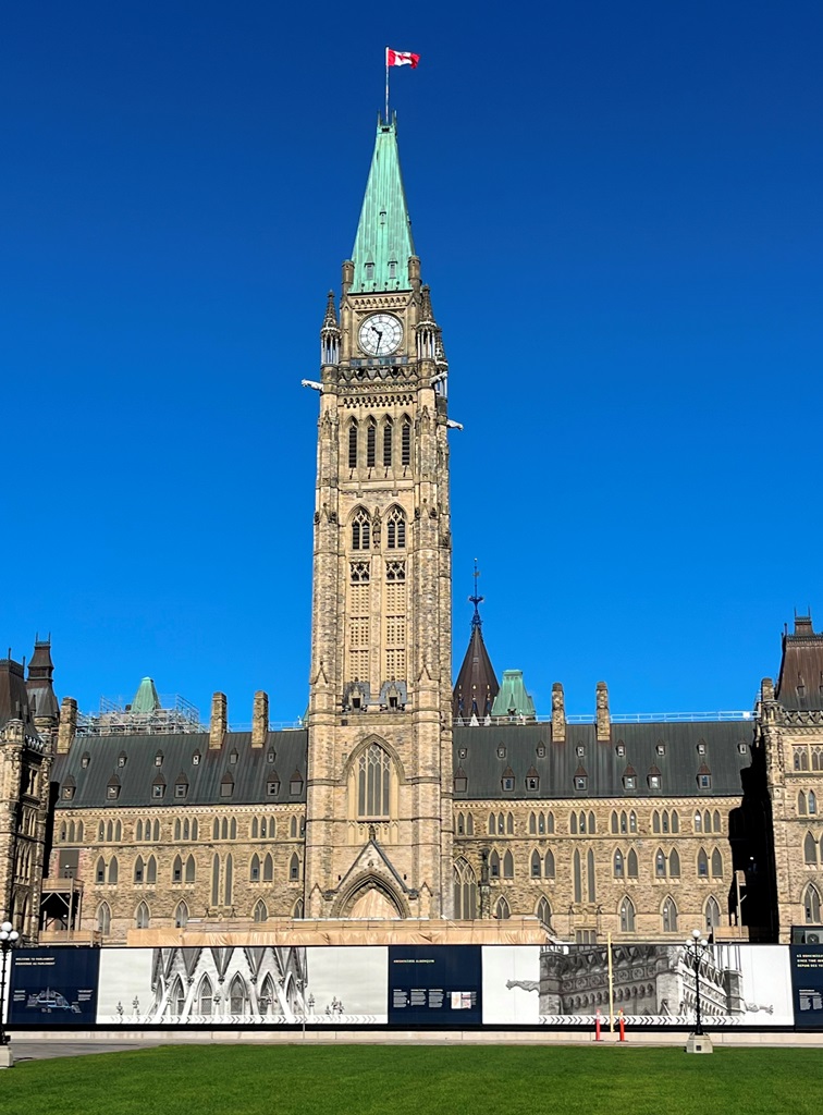 Encaminhámo-nos para a zona da Colina do Parlamento gozando a magnitude de toda a imensidão de edifícios, sendo de realçar a Torre da Paz (semelhante ao Big Ben de Londres) do edifício do Parlamento, o Parlamento e a paisagem e o casario de um e do outro lado do rio Ottawa.