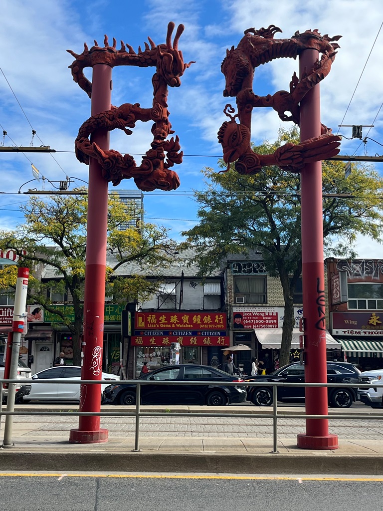 De seguida fomos para a zona do Kensington Market e Chinatown – Dundas St West com a Spaldina Ave. São ruas com uma grande variedade de restaurantes (chineses, vietnamitas, tailandeses e japoneses) e lojas com uma oferta muito variada, desde fruta a legumes frescos, ervas medicinais, souvenirs… A Chinatown desenvolve-se essencialmente ao longo da Spaldina Avenue sendo de realçar os portões vermelhos (cor que simboliza boa sorte e felicidade) com dragões, fénix….
