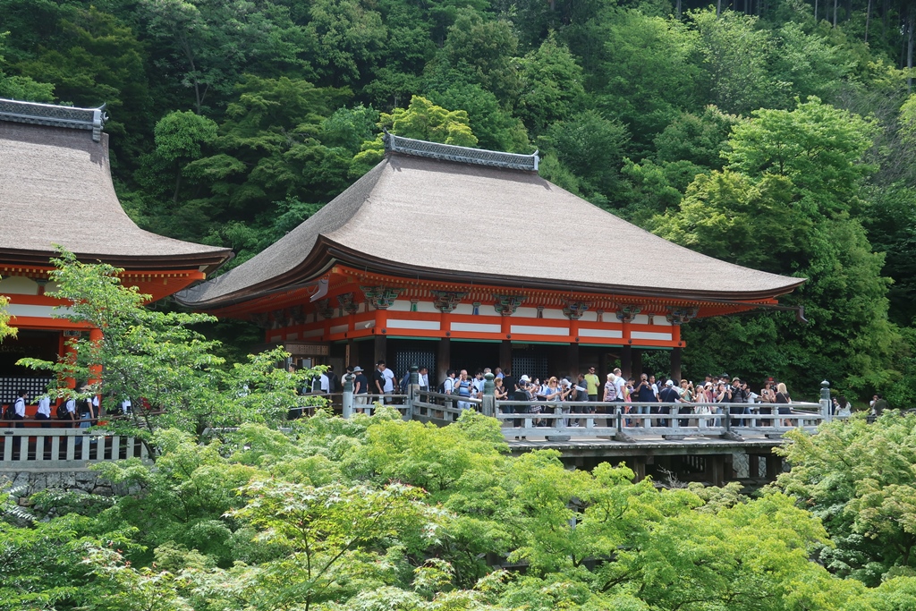 Chegámos ao Templo de Kiyomizu – talvez o mais famoso dos templos budistas de Quioto – por volta das 9h, tendo gozado toda a sua magnitude durante cerca de 1h e meia. É um templo de madeira, suportado por pilares, na encosta da montanha Otowa com uma impressionante varanda sobre o vale, oferecendo uma vista deslumbrante para a cidade de Quioto. Nas suas imediações, depois de descida a escadaria, perdemo-nos na imensidão de lojas com uma oferta riquíssima, à qual foi impossível resistir!