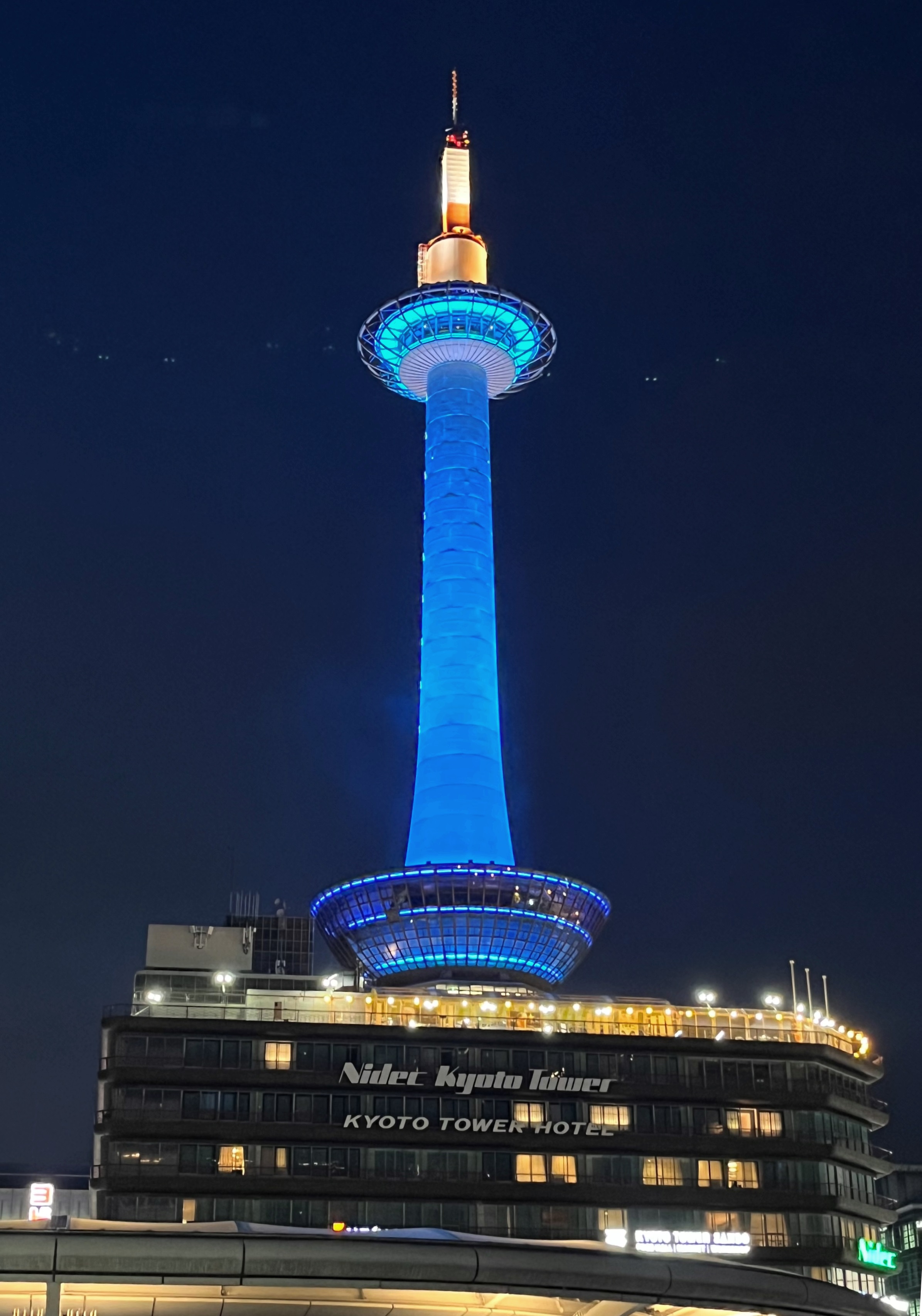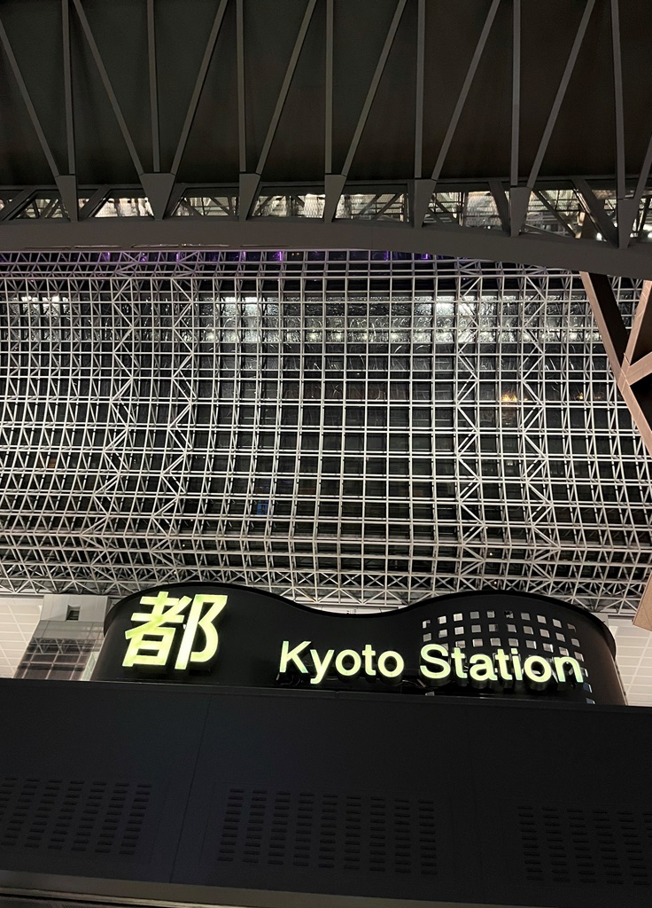 Depois destes momentos passados num local único, fomos de autocarro até ao local onde estávamos hospedados – Hotel Rihga Royal, localizado a cerca de 10 minutos a pé da Estação de Quioto. Por volta das 19.15 caminhámos até à estação – um edifício futurista grande e ao longo do trajeto fomo-nos deliciando com a Torre de Quioto que ia mudando de cor com frequência.