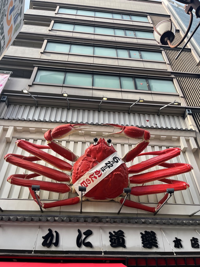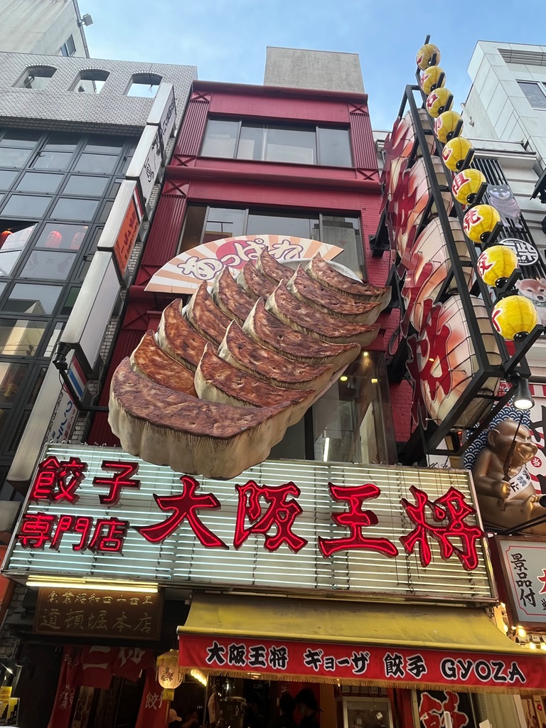 O autocarro libertou-nos no início da rua Dotonbori. É algo indescritível: rua vibrante, colorida e com edifícios com decorações enormes fora do comum – por exemplo – 1 vaca dourada que se destaca do edifício, um bife do “tamanho do mundo”, uma santola … – um apelo impressionante a qualquer pessoa que passe!