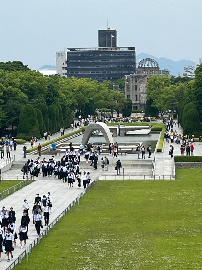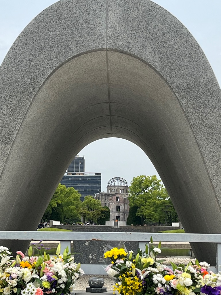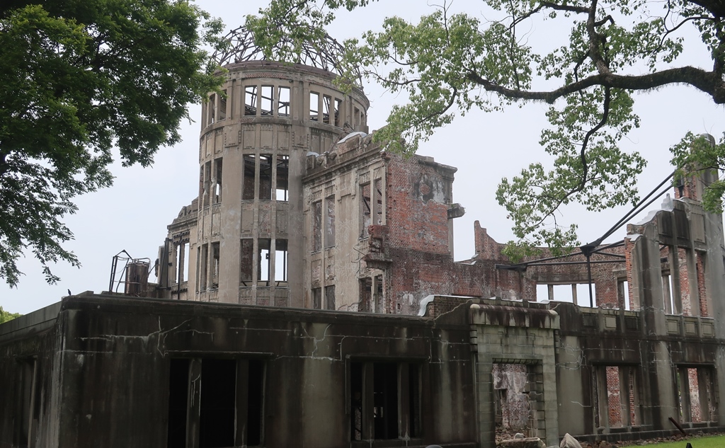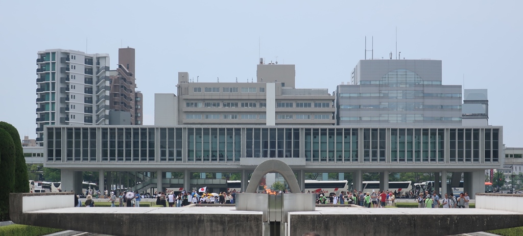Saímos do autocarro por volta das 10.30, perto do Memorial da Paz de Hiroshima, do lançamento da bomba atómica em 1945, também designado Cúpula Genbaku. Foi deixado como estava, após o bombardeio, em memória das vítimas.