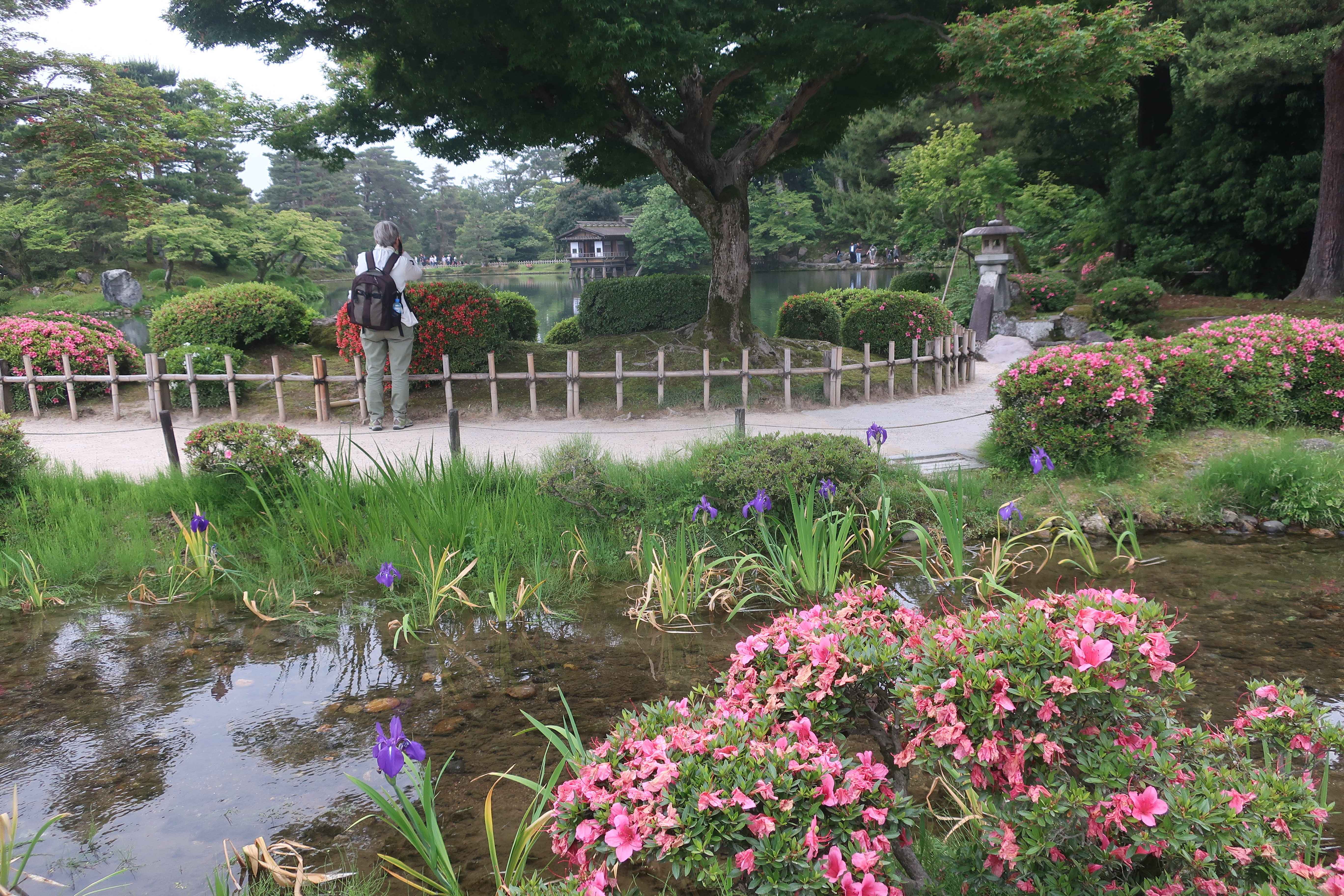 Daí retomámos o autocarro pois ainda faltava o principal destaque de Kanazawa – o Jardim Kenrokuen (iniciado no século XVII), considerado um dos três jardins mais famosos do Japão. Deliciámo-nos no seio da natureza, durante algum tempo (mais de uma hora) por entre lagos, cascatas, riachos, caminhos de pedra, pontes, casas de chá … Algo fora do comum!