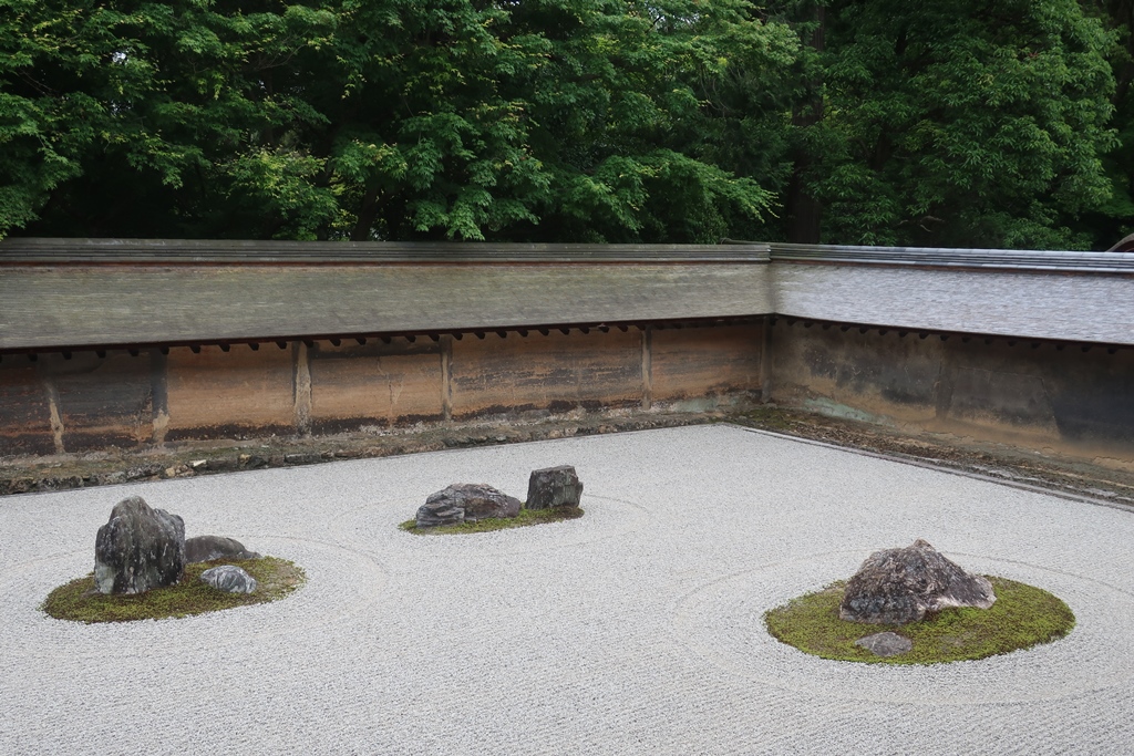 Daí encaminhámo-nos para algo único também, onde chegámos por volta das 15.30: o Templo Ryioanji – um dos templos zen mais conhecidos e famosos – sui generis pelo seu jardim de pedras e areia branca para expressar o mundo zen.