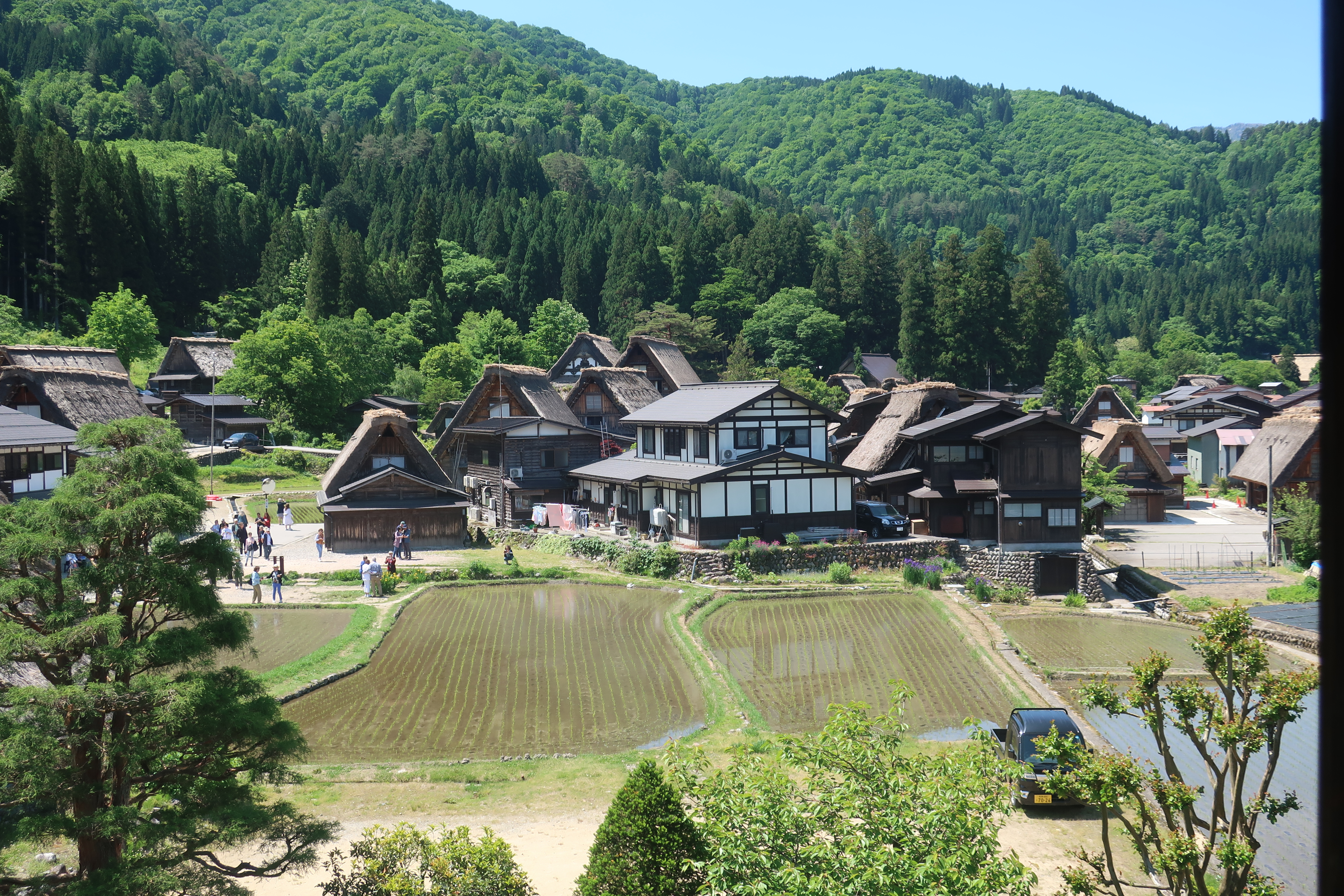 Volvido esse tempo, eis-nos chegados a algo paradisíaco que nos fez recuar no tempo: a província de Shirakawa-go – mais concretamente, Ogimachi- uma aldeia que parecia um conto de fadas! Rodeada de montanhas e água, com casas rurais em madeira, com telhados de palha e com o formato como mãos em oração designadas “gassho-zukuri“, e únicas no mundo. Demos um giro pela aldeia tendo visitado uma dessas casas. Sentimo-nos, por alguns momentos, embrenhados na sua cultura tradicional, tendo conseguido apreciar o ritmo de uma aldeia agrícola típica japonesa.