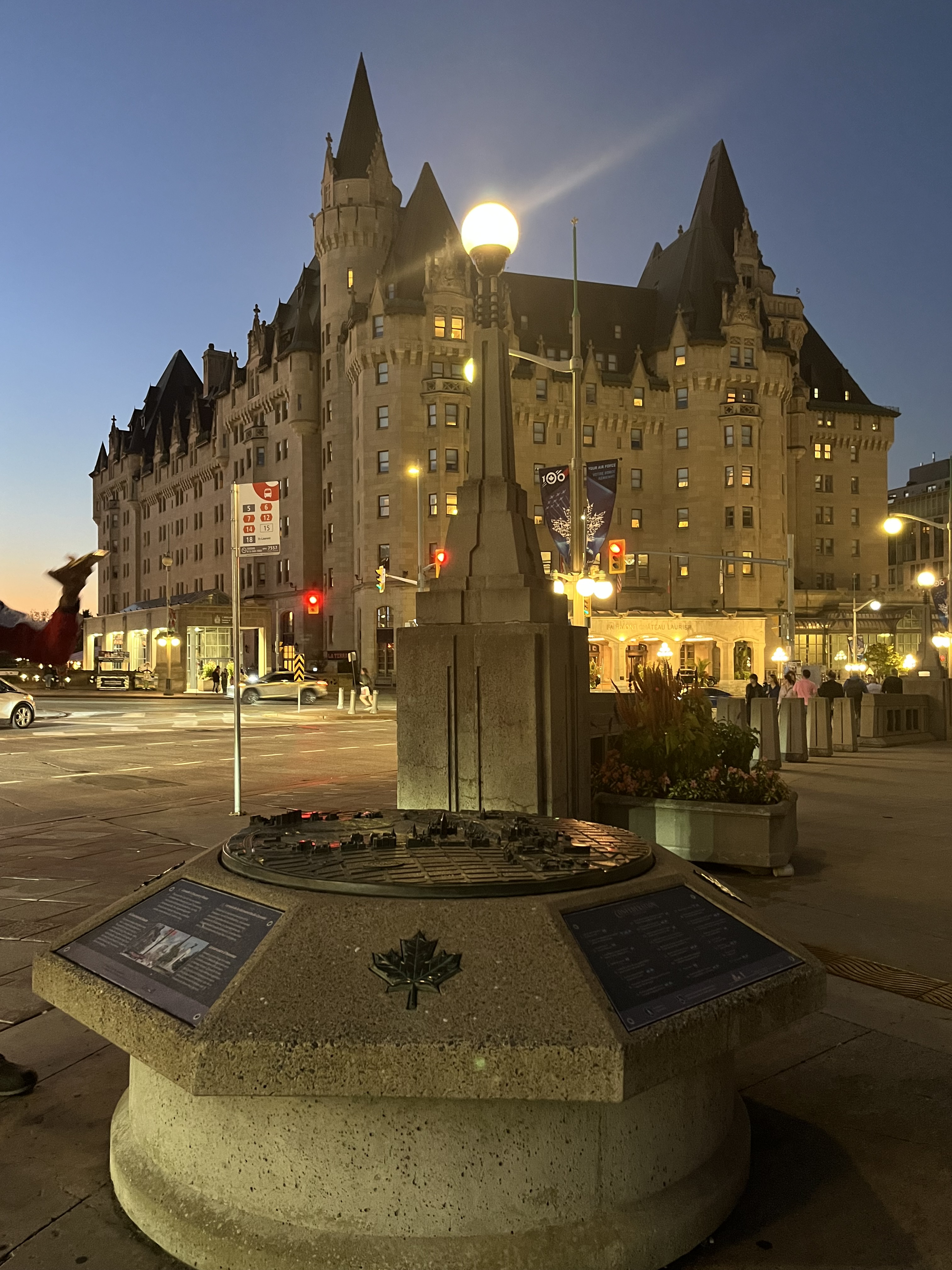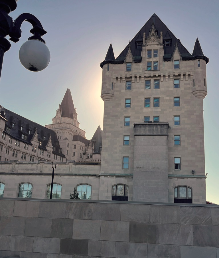 | Fairmont Château Laurier é um hotel luxuoso à beira do Canal Rideau, desde 1912, no coração do belo centro de Ottawa – na esquina da Rua Rideau, em frente à colina do Parlamento, com as comportas do Canal Rideau de um lado e o Mercado ByWard do outro. O design do Fairmont Château Laurier combina o estilo renascentista francês (parece um castelo) com as linhas verticais neogóticas dos edifícios do Parlamento tendo-se tornado atração turística na cidade; possui mais de 400 quartos com vistas incríveis dos arredores; por mais de 100 anos, recebeu rostos famosos e visitantes de todo o mundo que passaram por 1 experiência de uma estadia de luxo elevada no Canadá – foi designado como Sítio Histórico Nacional do Canadá em 1980 – |