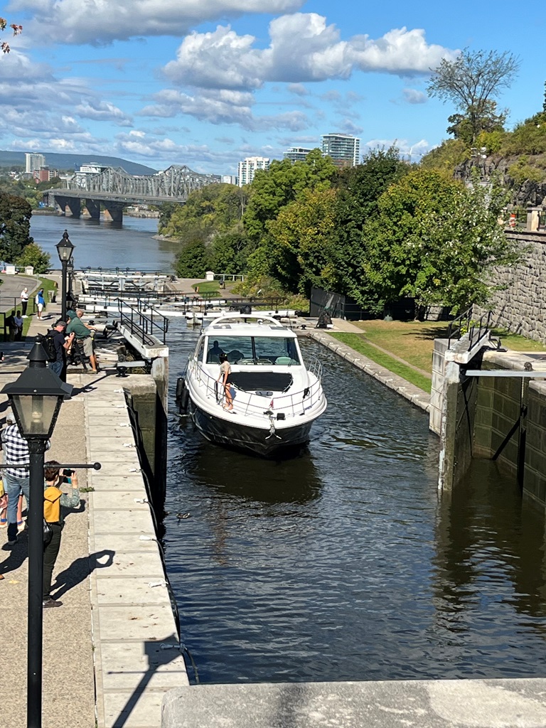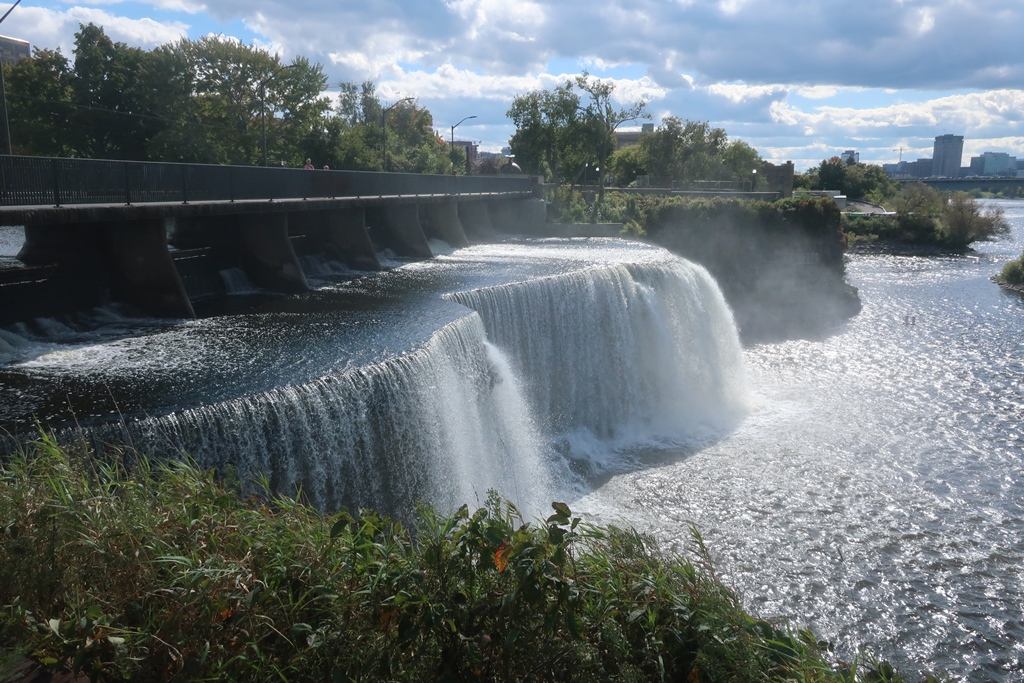 Foi o trajeto mais penoso da viagem pois para além do número de quilómetros, a chuva acompanhou-nos durante parte do trajeto, mas mesmo assim por volta das 14 h (saímos da cidade de Québec por volta das 8h) já estávamos a gozar mais umas cataratas, desta vez as Rideau Falls, muito perto de Ottawa.