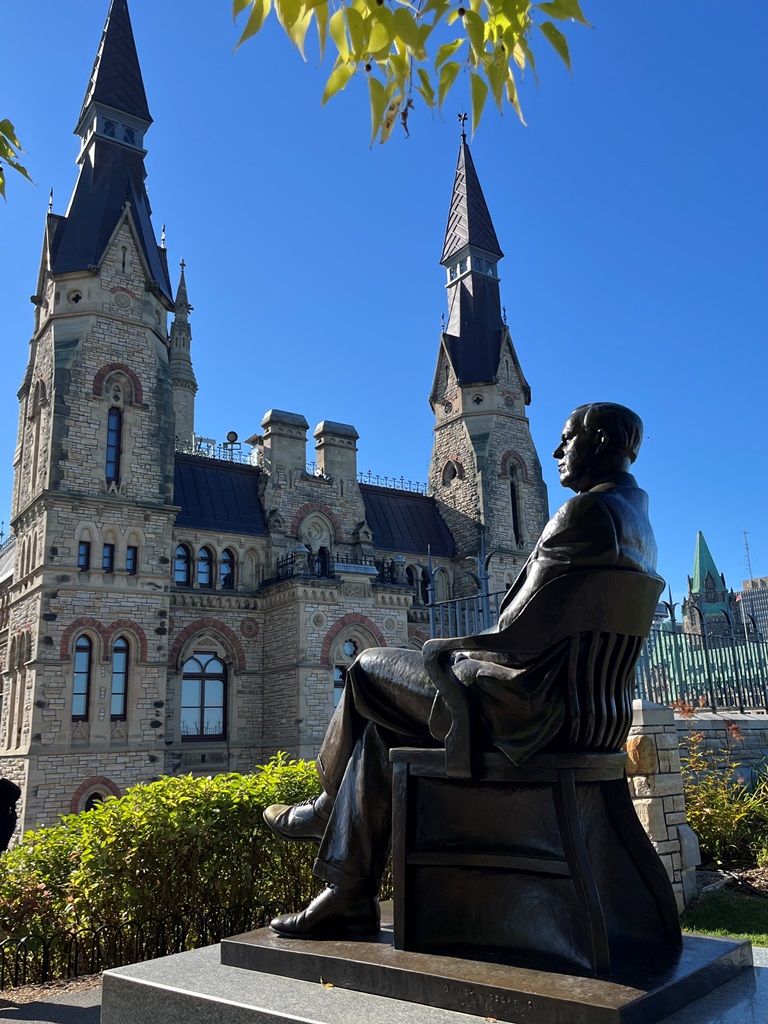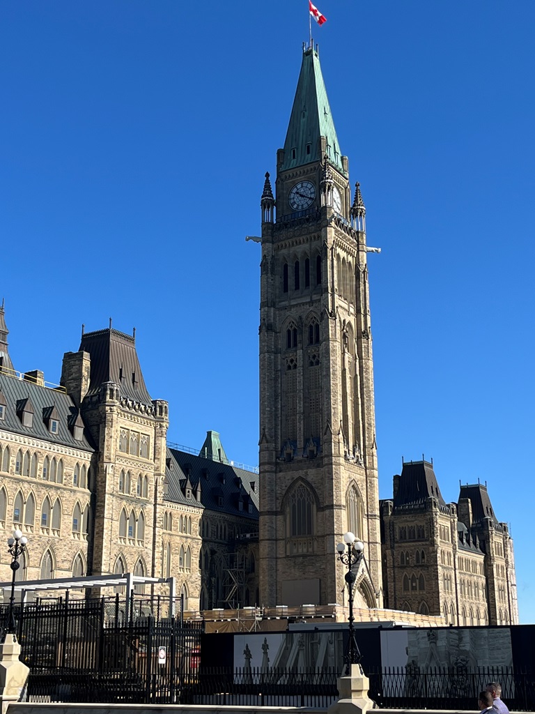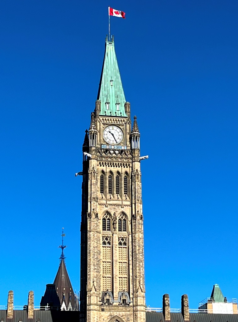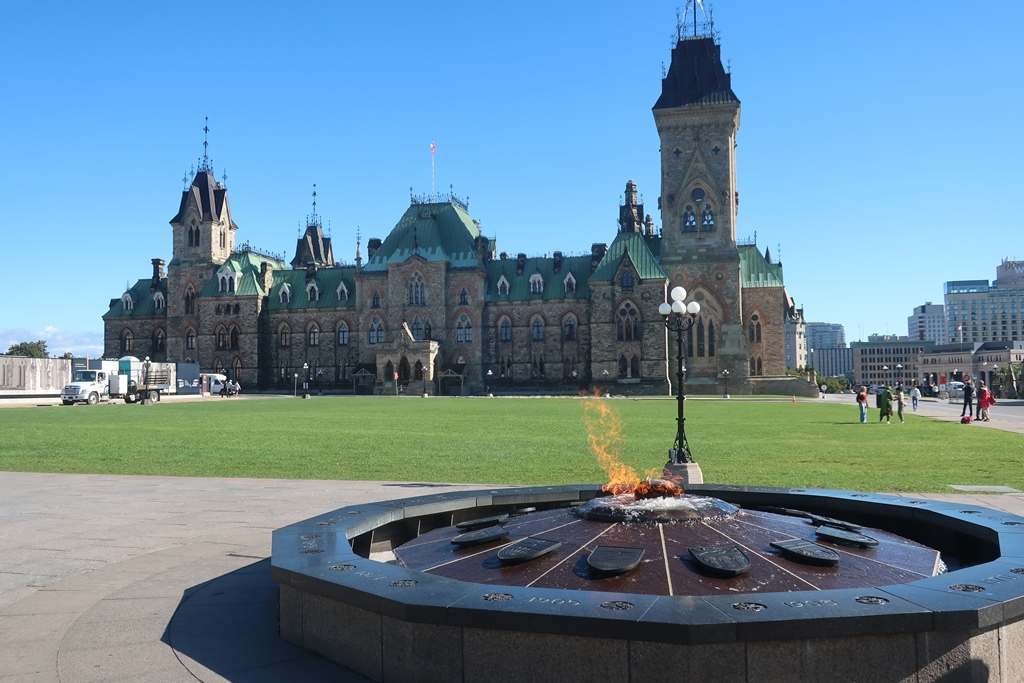Encaminhámo-nos para a zona da Colina do Parlamento gozando a magnitude de toda a imensidão de edifícios, sendo de realçar a Torre da Paz (semelhante ao Big Ben de Londres) do edifício do Parlamento, o Parlamento, a paisagem e o casario de um e do outro lado do rio Ottawa.
