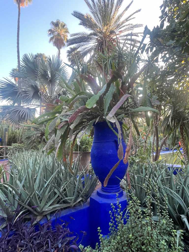 O Jardim Majorelle é, assim, um jardim botânico e artístico de cerca de 1 hectare com cerca de 300 espécies, famoso pelo azul cobalto intenso das suas construções, o verde intenso das plantas e pela coleção de plantas exóticas, e pela ligação a Jacques Majorelle, Yves Saint Laurent e Pierre Bergé.